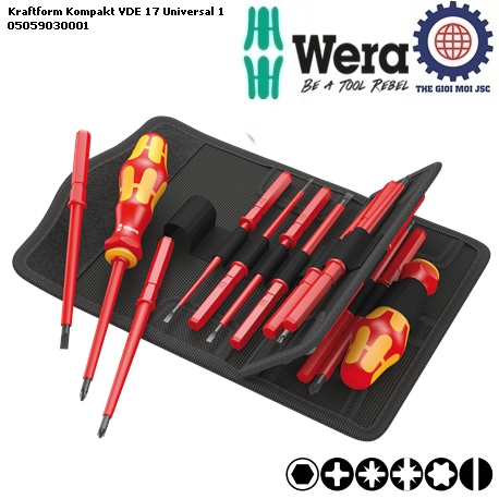 Bộ tua vít Wera Kraftform Kompakt VDE 17 Universal 1 gồm 17 chiếc.